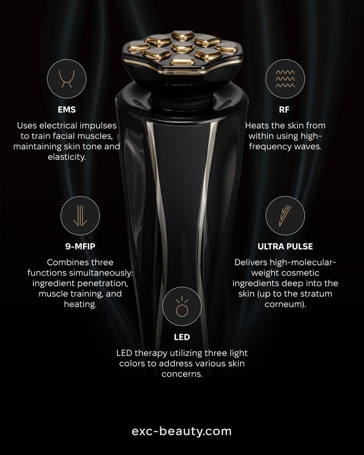 - Interval Pulse Current (9-MFIP): At-home SMAS lifting for skin tightening.