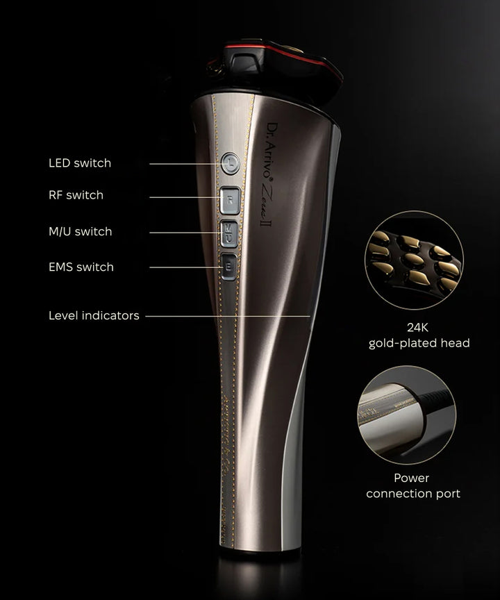Dr. Arrivo Zeus II Plus (Black) represents an evolution in professional anti-aging care, delivering a salon-quality experience in the comfort of your own home. This flagship model from Dr. Arrivo combines breakthrough technology, precise engineering, and the aesthetics of a premium beauty instrument designed in Japan.